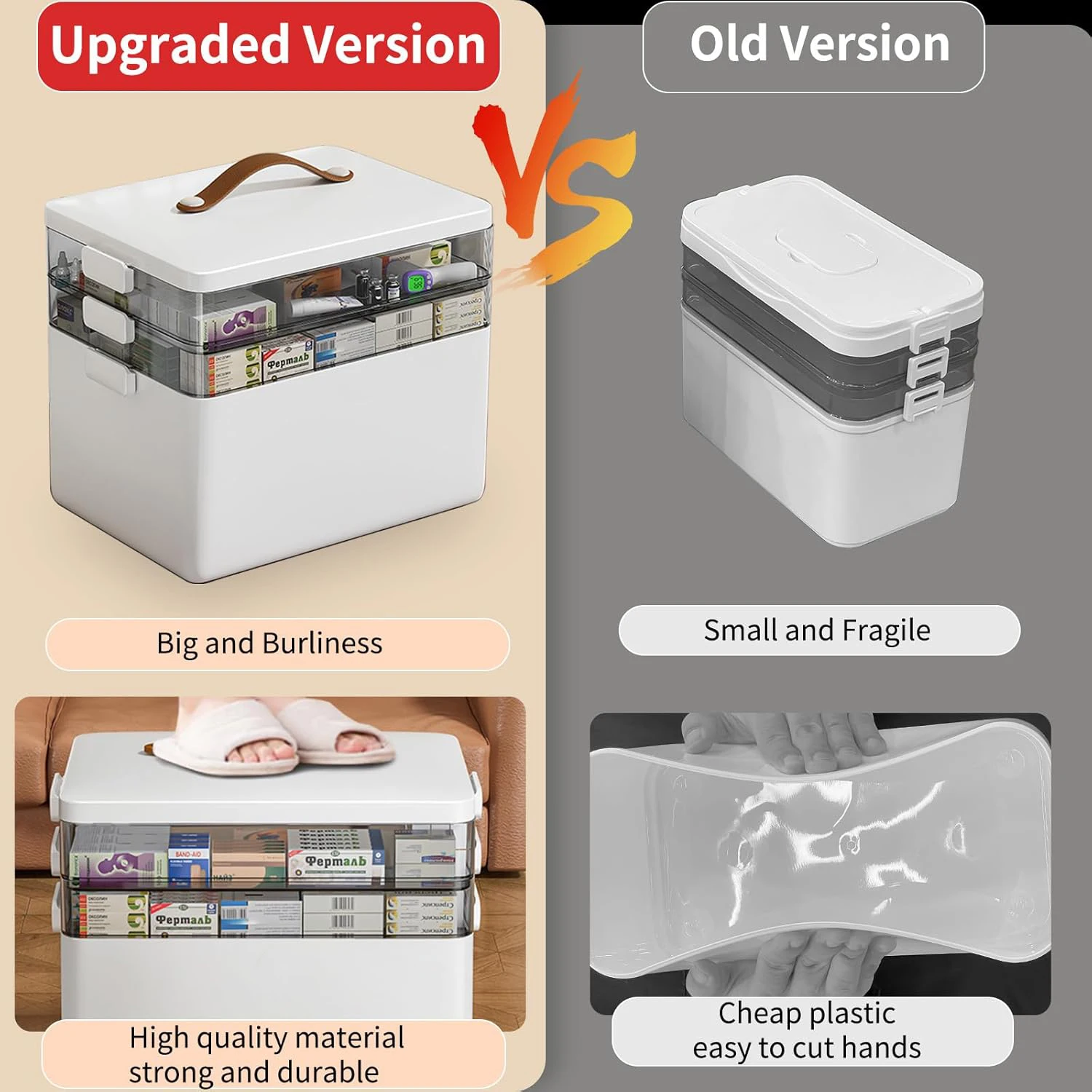 [Matériau de qualité supérieure et haute durabilité] : Notre boîte de premiers secours est fabriquée en PP de haute qualité, sans odeur, robuste et durable. La poignée en cuir, agréable au toucher, permet une prise en main confortable et pratique pour le transport.