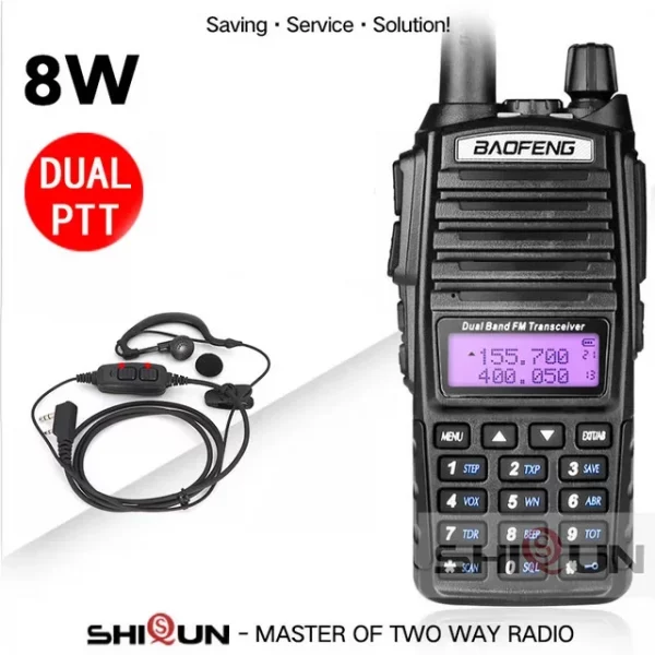 - Dual PTT : Permet une utilisation facile et une qualité sonore claire avec un bouton PTT supplémentaire.