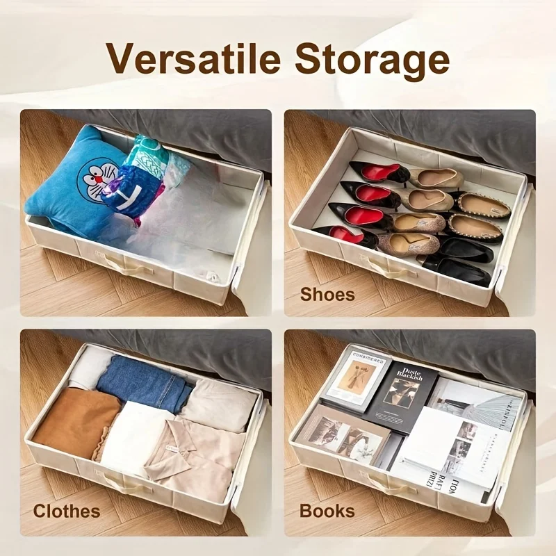 La boîte de rangement pliable sous le lit 50L offre une solution pratique pour organiser facilement vos vêtements et accessoires. Grâce à sa conception robuste en tissu non tissé, elle résiste à l’usure tout en restant légère. Ainsi, vous profitez d’un rangement polyvalent, durable et adapté aux espaces étroits. De plus, l’ouverture à rabat permet un accès rapide au contenu sans devoir tirer toute la boîte.