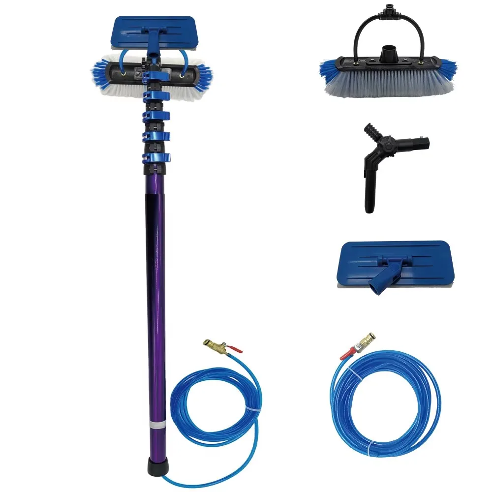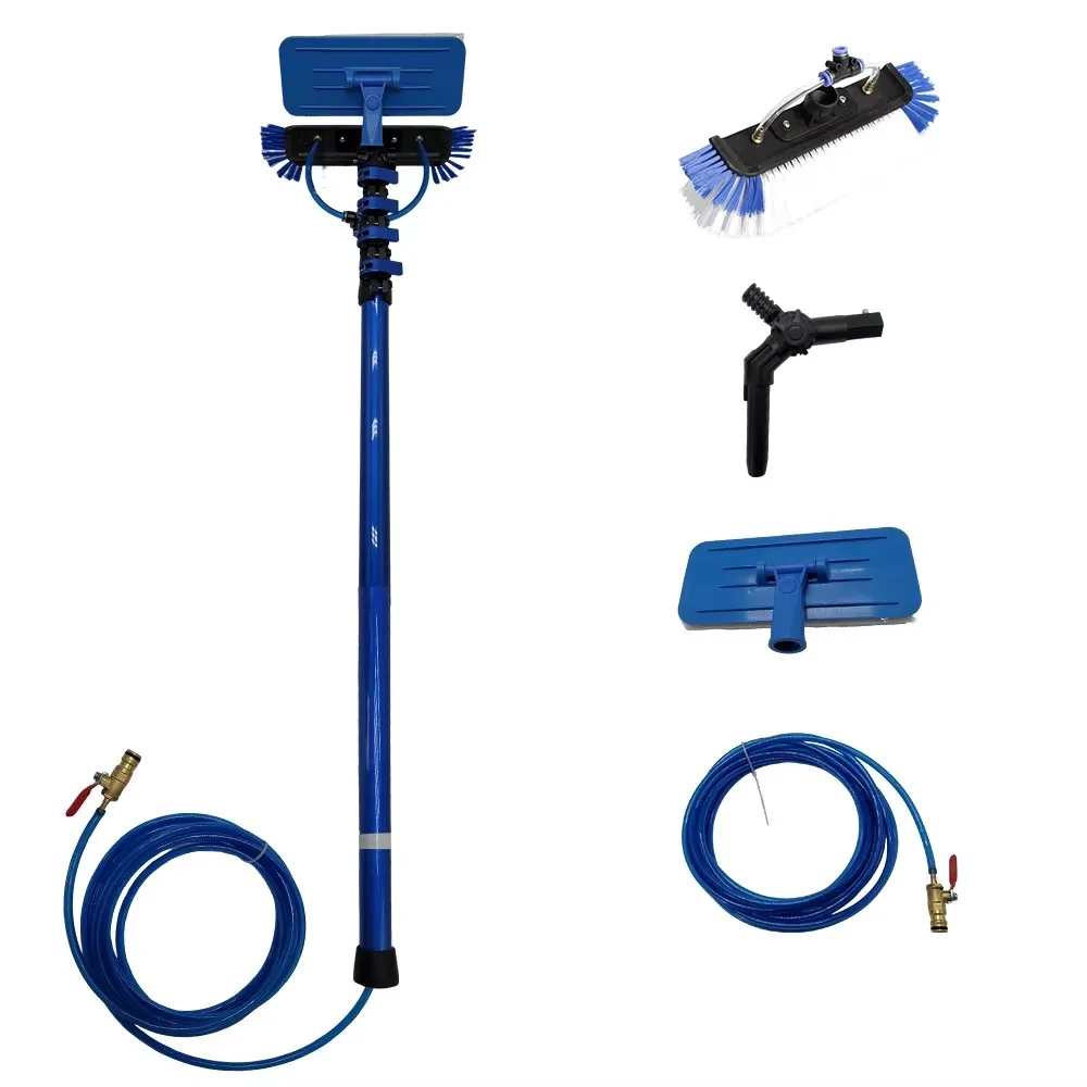 Brosse alimentée en eau avec manche en fibre de carbone pour nettoyage de panneaux solaires de 12 ou 20 pieds (3,6 ou 6,0 mètres), équipée d’un plateau rotatif pour nettoyage de fenêtres.