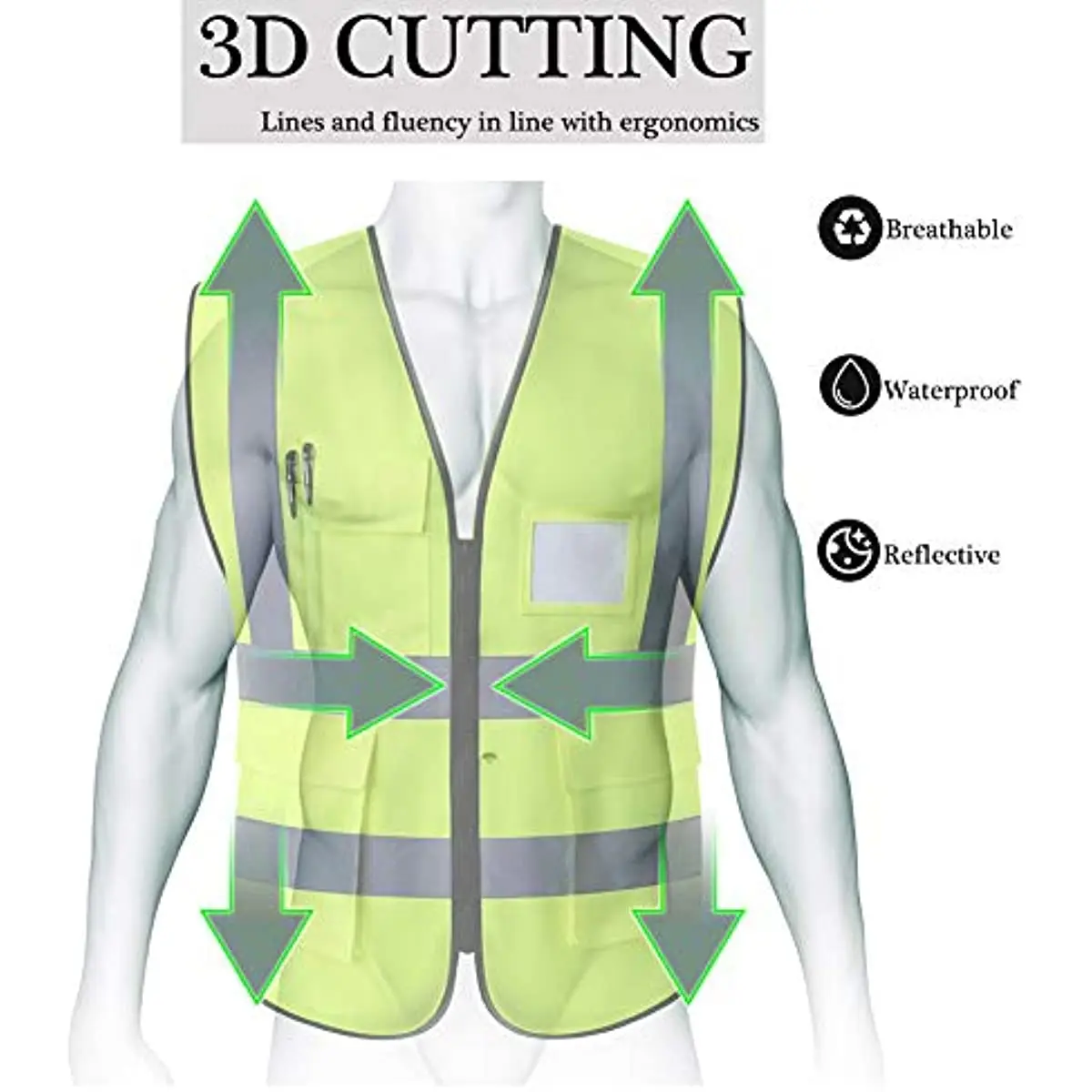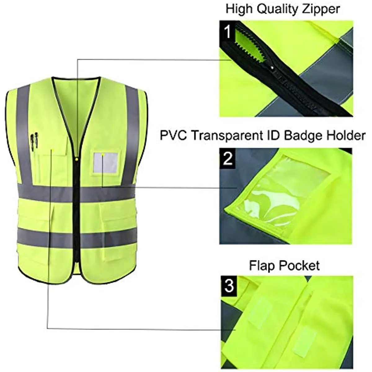 Le gilet haute visibilité possède 5 poches pour ranger stylos, clés, téléphones, cartes, portefeuilles, etc. avec Velcro pour un accès facile.
