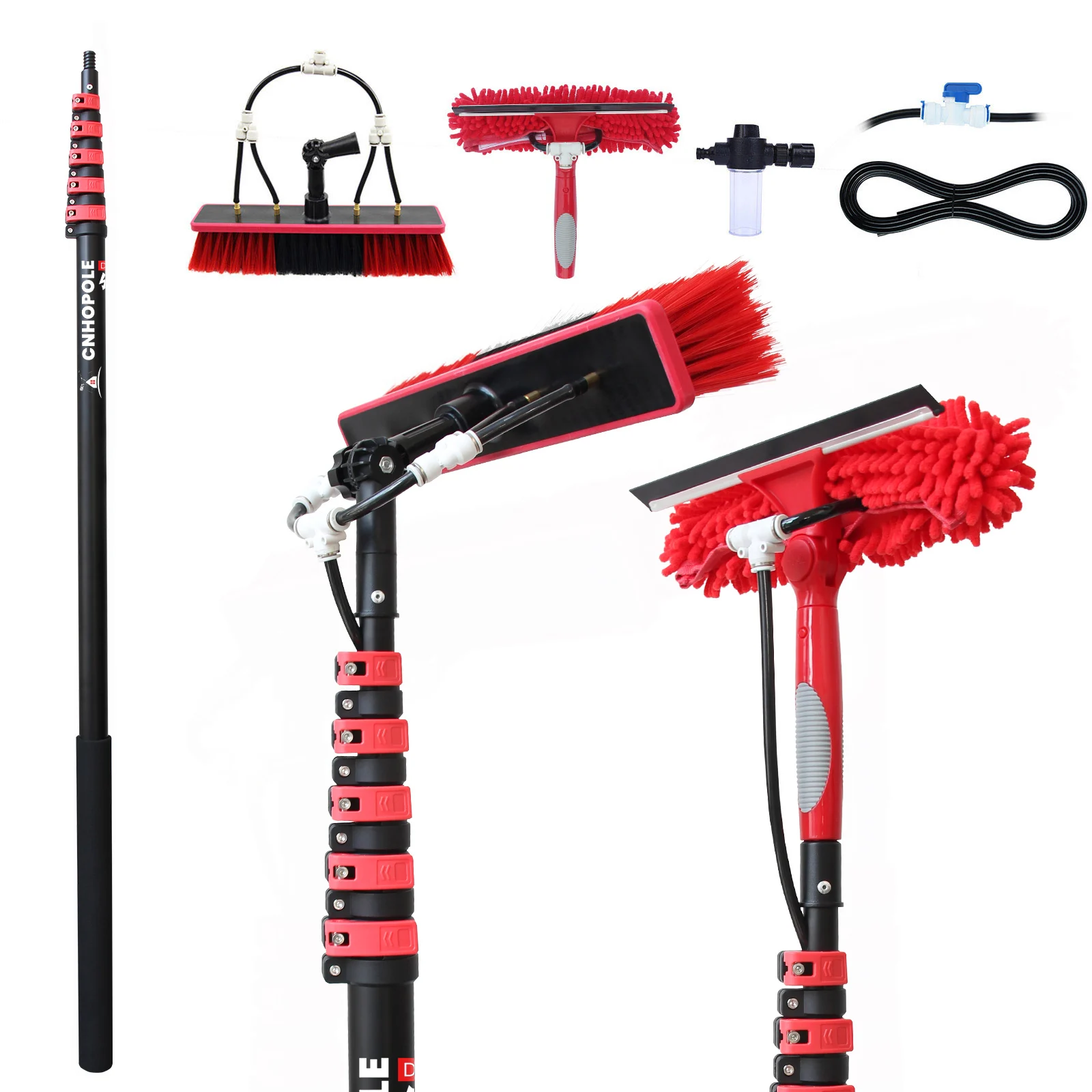 Inclut un mât télescopique (20/24 pieds) et une tête de brosse à passage d’eau à verrouillage. Le kit de nettoyage pour fenêtres s’enroule sur 5 ou 6 niveaux et s’étend jusqu’à 20 ou 24 pieds. Atteignez plus de 24 pieds en restant debout. Plus besoin d’échelle pour effectuer facilement le nettoyage en hauteur.