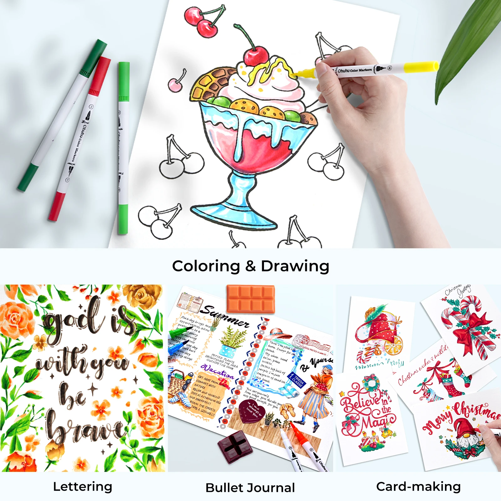 Cet ensemble de marqueurs à double pinceau comprend 36 couleurs vibrantes, chaque stylo étant numéroté pour faciliter la recherche. Une carte de nuancier DIY vierge est incluse pour organiser vos couleurs selon vos préférences.