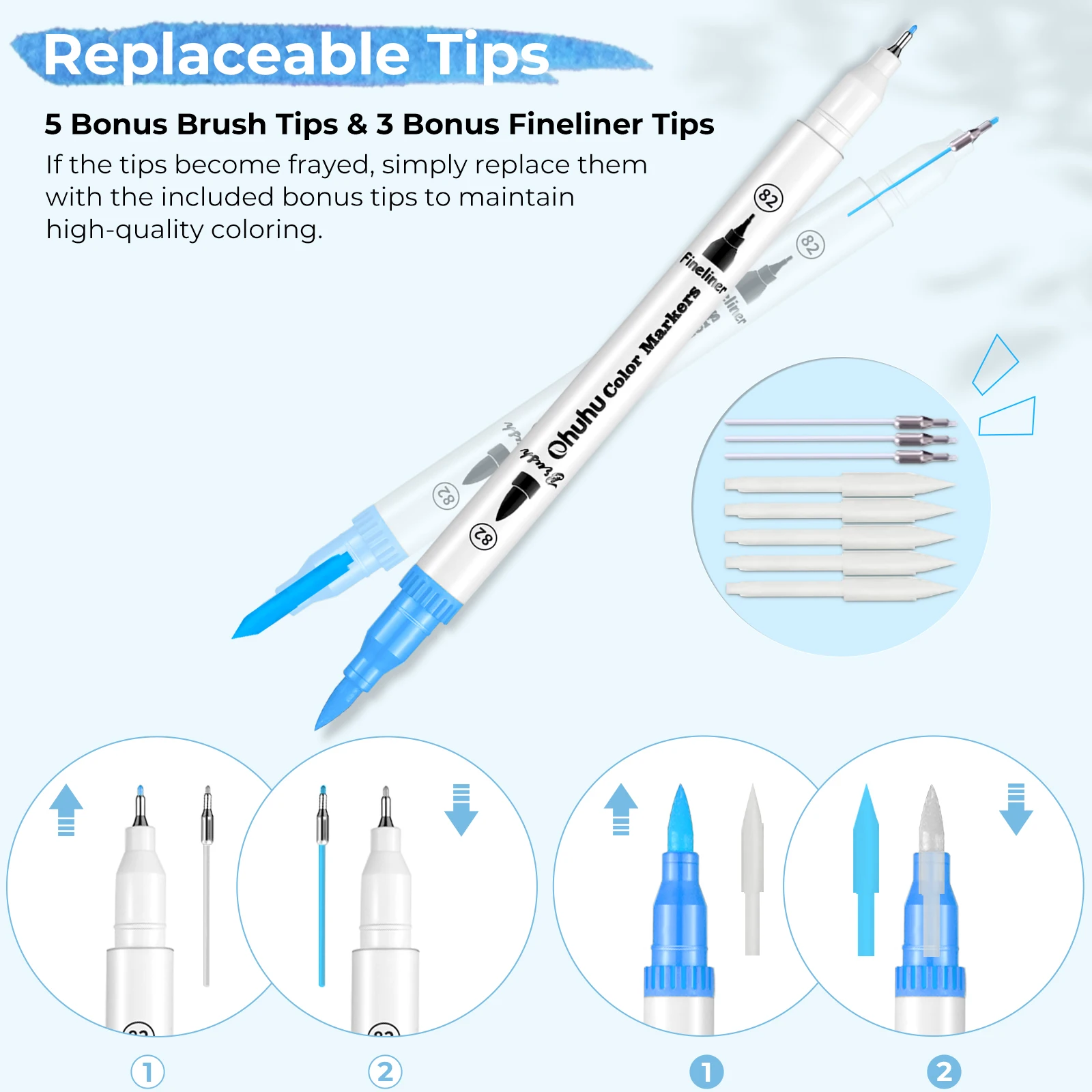 Ces stylos à double pointe sont indispensables pour vos chefs-d'œuvre. La pointe fine de 0,4 mm permet de dessiner des détails avec précision, tandis que la pointe de pinceau souple de 1 à 2 mm est idéale pour les projets d'art de grande surface, comme l’ombrage et le mélange.